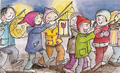 A la Saint Martin, dans de nombreux villages et villes allemandes, on chante avec les lanternes à la main « Laterne, laterne, Sonne Mond und Sterne » (Lanterne, lanterne, soleil, lune et étoile) ou « Ich gehe mit meiner Laterne und meine Laterne mit mir. » (Je me promène avec ma lanterne et ma lanterne avec moi.) ♪ ♪ ♪ ♪♪ ♪♪♪ ♪ ♪