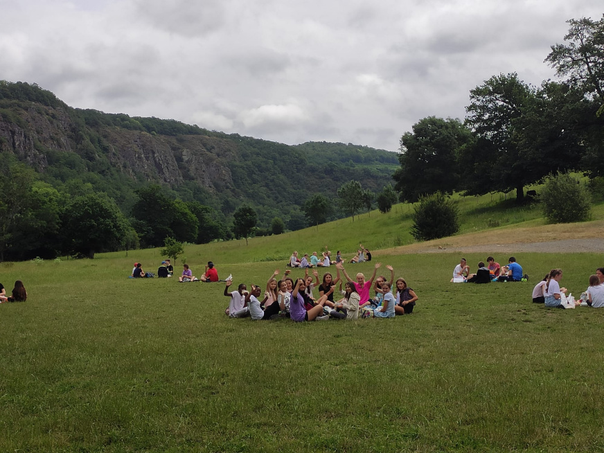 Les élèves de 6B et de 6F, ainsi que leurs professeurs, sont bien arrivés à Clécy. Ils ont pu pique-niquer dans un cadre magnifique !