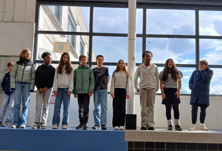 Le dernier jour, tous les élèves de 4e, la classe ULIS (qui a bénéficié de 20 heures d’intervention) ont présenté un travail d’une quarantaine de minutes devant les élèves de 5e et le personnel de l’établissement. Les chorégraphies et tableaux présentés, les propos des élèves ont su toucher et séduire un public impressionné par la qualité d’un travail mené en un temps relativement court. L’on retiendra les mots d’une élève ukrainienne, scolarisée depuis deux ans dans l’établissement, scandant : « Je ne comprends pas pourquoi les gens se battent ? Pourquoi les gens se battent ? » Les voix de ses camarades l’accompagnaient tandis que les gorges des adultes se serraient d’émotion…